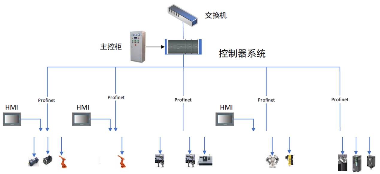整個(gè)控制系統(tǒng)利用工業(yè)級(jí)交換機(jī),建立設(shè)備之間的通訊網(wǎng)絡(luò)。