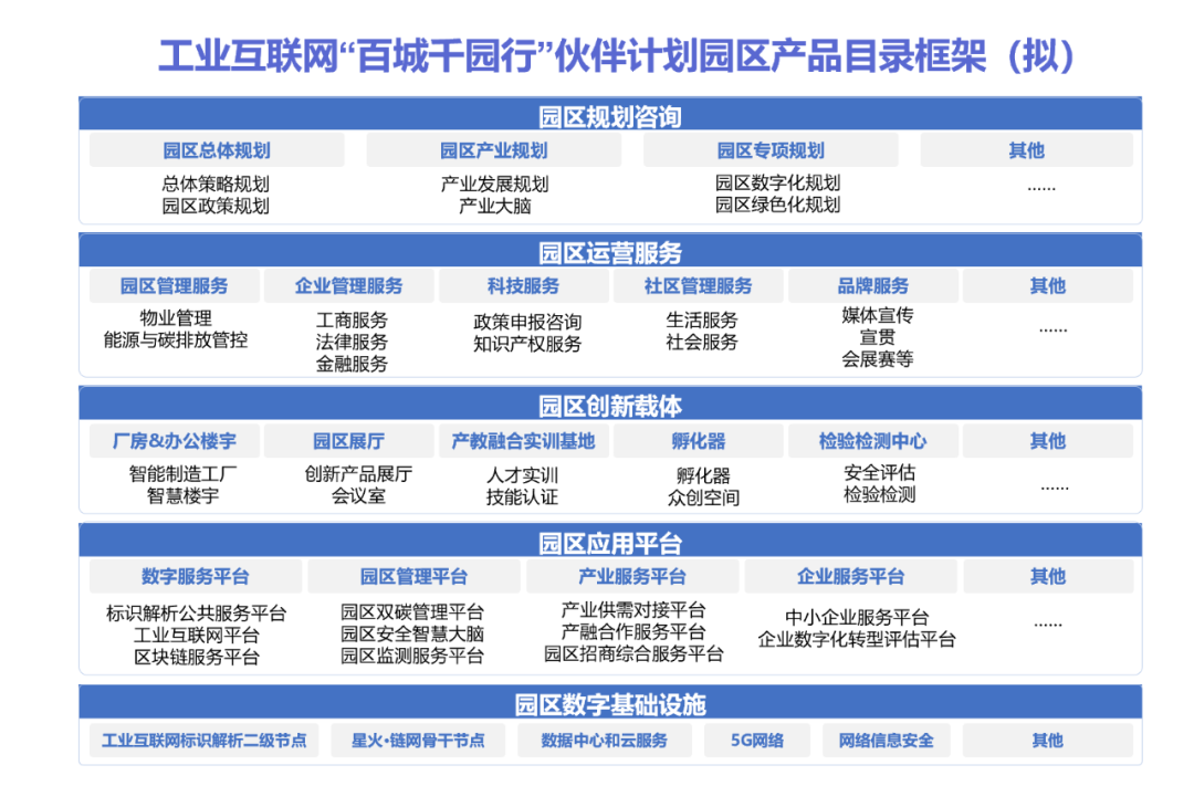 《工業互聯網“百城千園行”伙伴計劃園區產品目錄手冊》架構體系(擬)