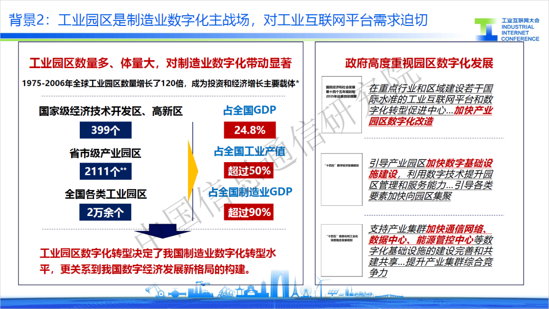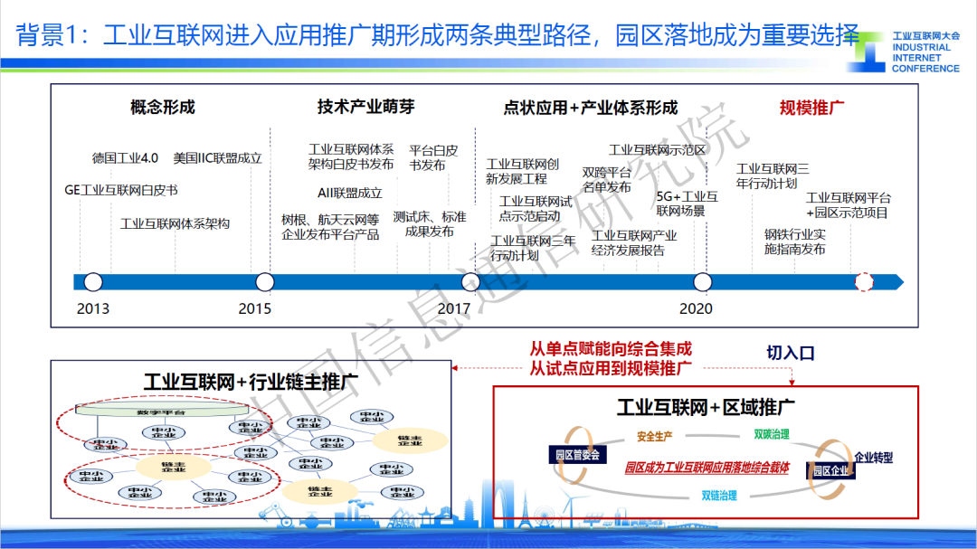 當(dāng)前,工業(yè)互聯(lián)網(wǎng)進(jìn)入應(yīng)用推廣關(guān)鍵期,圍繞行業(yè)、區(qū)域形成了兩條推廣路徑,其中工業(yè)園區(qū)具有數(shù)量多、體量大的特點(diǎn),對(duì)制造業(yè)數(shù)字化帶動(dòng)效果顯著,已成為工業(yè)互聯(lián)網(wǎng)區(qū)域應(yīng)用落地的關(guān)鍵載體。