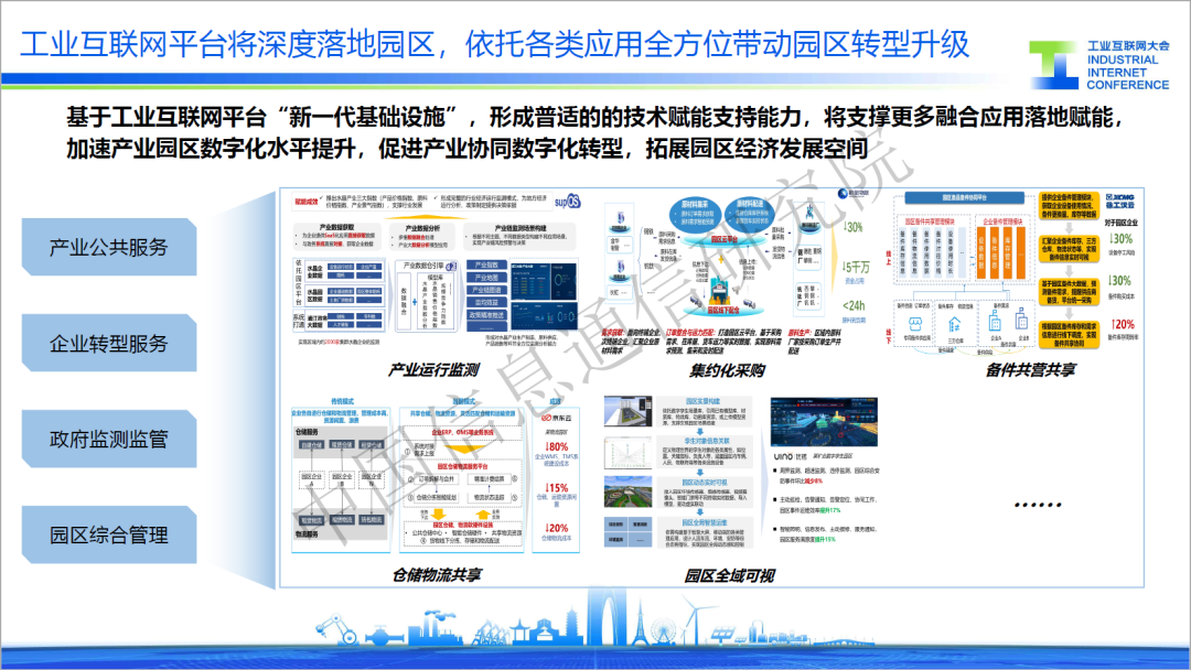 此外,“典型場(chǎng)景”中還包括產(chǎn)業(yè)運(yùn)行監(jiān)測(cè)、集約化采購、備件共營共享、倉儲(chǔ)物流共享、園區(qū)全域可視等重點(diǎn)應(yīng)用場(chǎng)景。