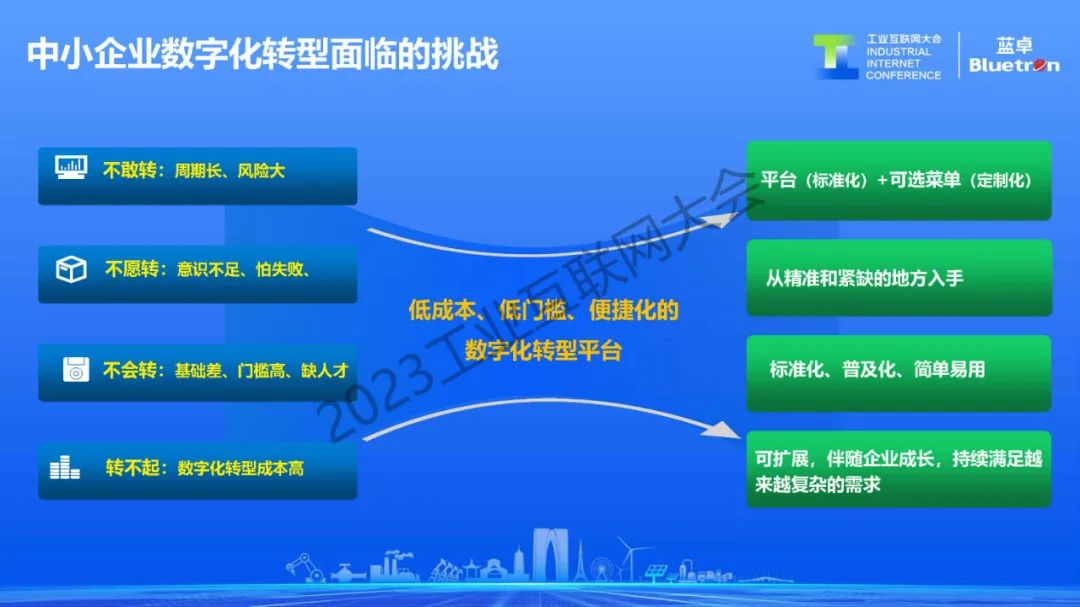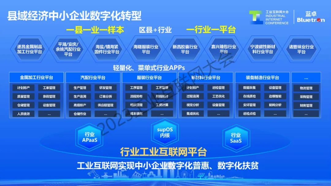 基于這種輕量級、菜單式、云上SaaS化的訂閱式應用,降低中小企業使用數字化基于工業互聯網的方式。現在正在長三角、珠三角推進一縣一業一樣本,一行業一平臺的區域經濟中小企業數字化轉型方式,實現中小企業的數字化普惠。