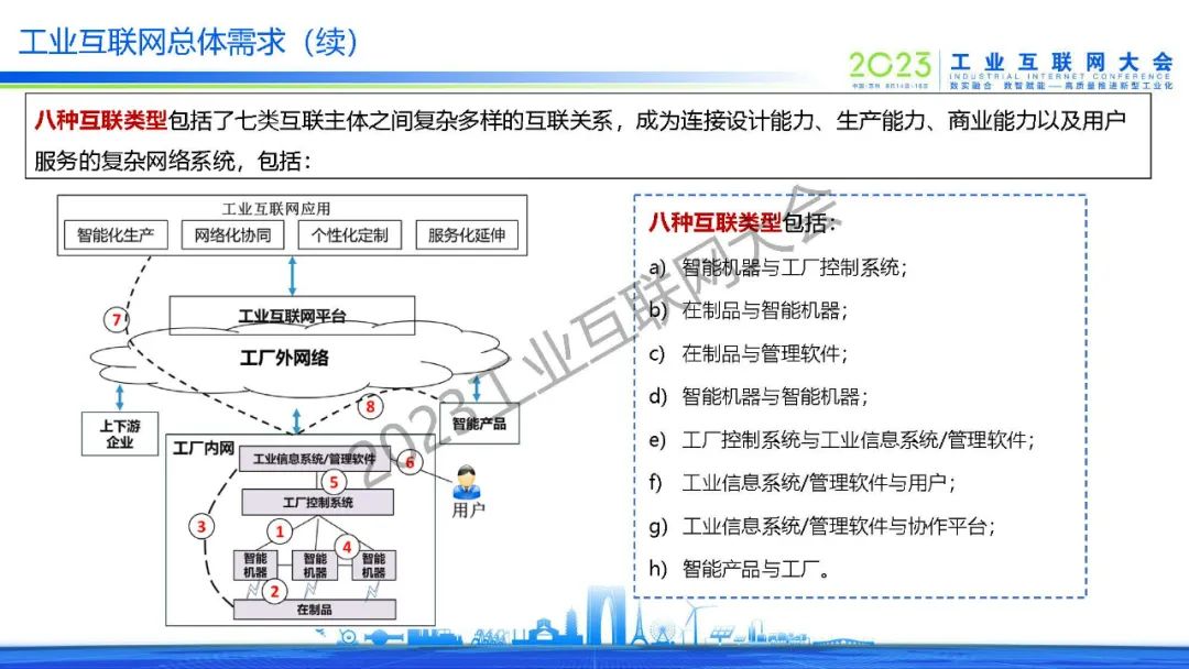 張恒升指出網絡是工業(yè)互聯(lián)網的基礎,《工業(yè)互聯(lián)網總體網絡架構》規(guī)定包括工廠內、外網絡的工業(yè)互聯(lián)網總體架構,以及工廠內、外網絡連接框架、目標架構以及網絡實施框架組成等。標準把整個工業(yè)互聯(lián)網里的主體對象做了一個總結,圍繞工業(yè)服務企業(yè)、工業(yè)制造企業(yè)、網絡服務企業(yè)這三個企業(yè)主體定義了七類互聯(lián)網主體連接關系。八種互聯(lián)類型包括了七類互聯(lián)主體之間復雜多樣的互聯(lián)關系,成為連接設計能力、生產能力、商業(yè)能力以及用戶服務的復雜網絡系統(tǒng)。