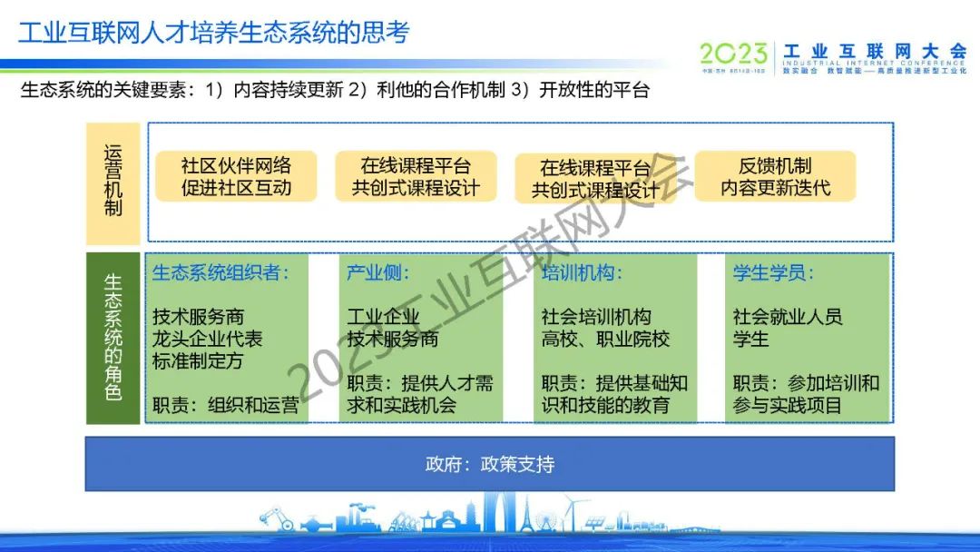 “工業(yè)互聯(lián)網(wǎng)人才培養(yǎng)生態(tài)系統(tǒng)的關(guān)鍵要素:1)內(nèi)容持續(xù)更新2)利他的合作機(jī)制3)開放性的平臺(tái)。”
