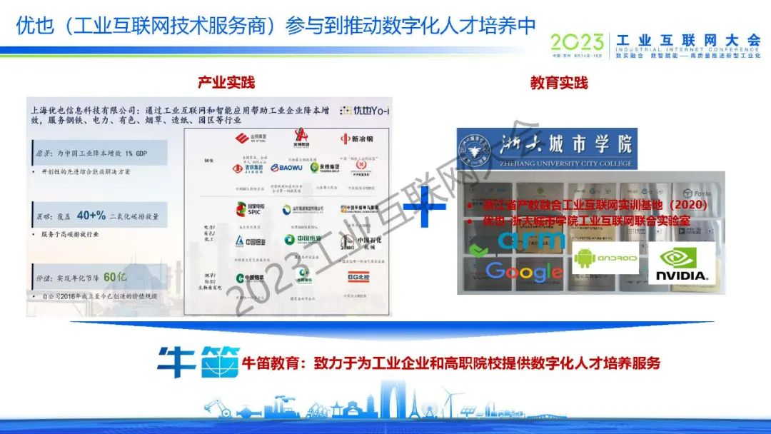 6月14日,在2023工業(yè)互聯(lián)網(wǎng)大會(huì)“工業(yè)互聯(lián)網(wǎng)人才發(fā)展論壇”上,上海優(yōu)也信息科技有限公司副總經(jīng)理、牛笛教育科技公司總經(jīng)理李志芳發(fā)表了《工業(yè)互聯(lián)網(wǎng)產(chǎn)業(yè)到教育融通的實(shí)踐和思考》的主題演講。