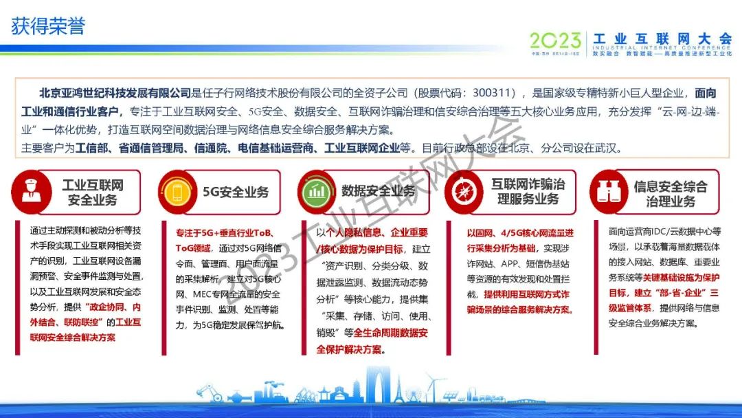 6月14日,在2023工業(yè)互聯(lián)網(wǎng)大會(huì)“融合新模式、融入新工業(yè)論壇暨中國互聯(lián)網(wǎng)協(xié)會(huì)工業(yè)互聯(lián)網(wǎng)工作委員會(huì)第一屆委員會(huì)第二次全體成員會(huì)議”上,北京亞鴻世紀(jì)科技發(fā)展有限公司總經(jīng)理林飛發(fā)表了《5G+工業(yè)互聯(lián)網(wǎng)安全,護(hù)航鋼鐵行業(yè)高質(zhì)量發(fā)展》的演講。