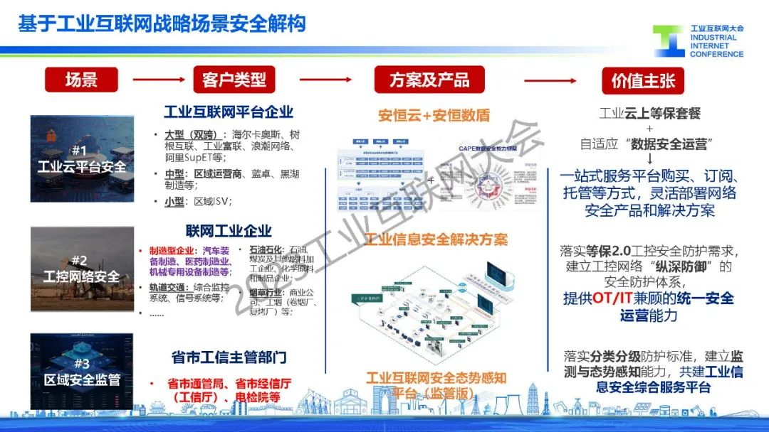 “基于工業(yè)互聯(lián)網(wǎng)態(tài)勢(shì)感知平臺(tái),聯(lián)動(dòng)所有安全設(shè)備與系統(tǒng),實(shí)現(xiàn)資產(chǎn)管理、設(shè)備管理、人員管理、事件管理。通過(guò)技術(shù)與管理相結(jié)合,構(gòu)建安全檢測(cè)、安全防御、安全運(yùn)維、安全響應(yīng)的閉環(huán)安全體系。”