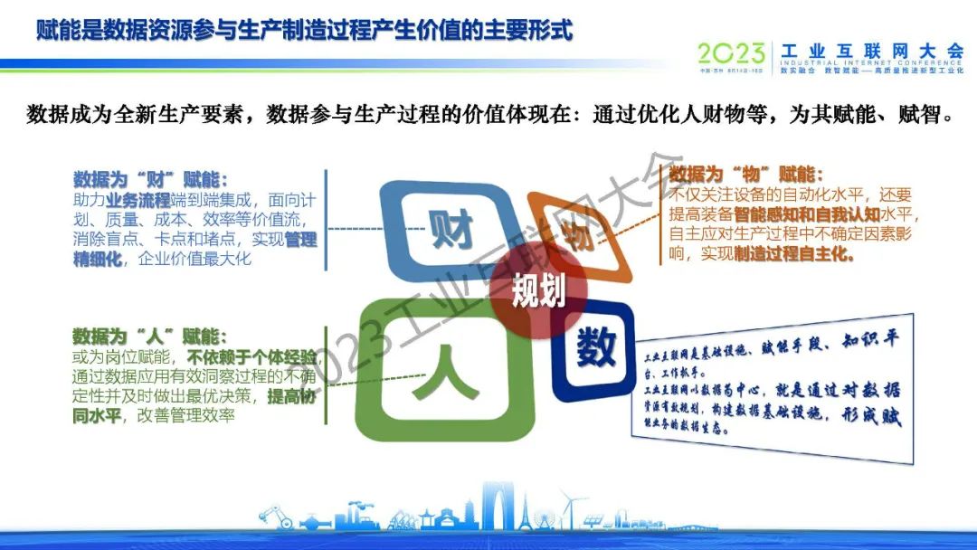 “數(shù)據(jù)成為全新生產(chǎn)要素,數(shù)據(jù)參與生產(chǎn)過(guò)程的價(jià)值體現(xiàn)在:通過(guò)優(yōu)化人財(cái)物等,為其賦能、賦智。”