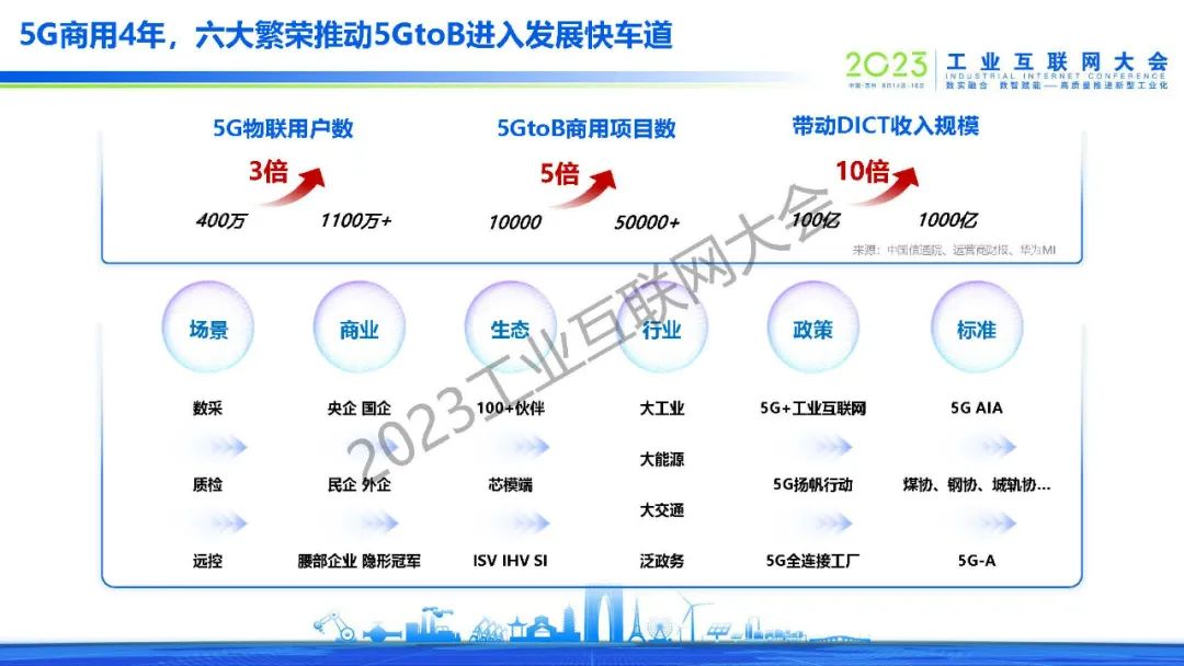 6月16日,在2023工業互聯網大會“‘5G+工業互聯網’融合發展高端論壇”上,華為公司5G產品線副總裁孫震濤發表了《5G賦能全連接工廠,共筑新型工業化基石》的主題演講。