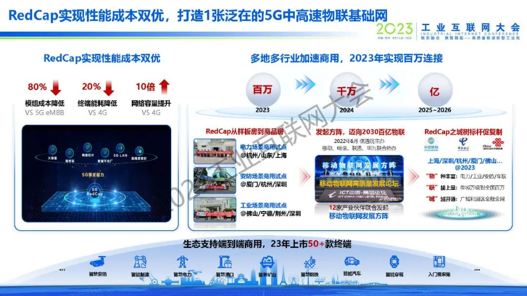 “RedCap會成為5G中高速業務的最佳承載,其核心繼承了包括大上行、時延、定位、可靠等關鍵能力,并大幅降低5G模組的成本,實現性能成本雙優,打造1張泛在的5G中高速物聯基礎網?!?/p>