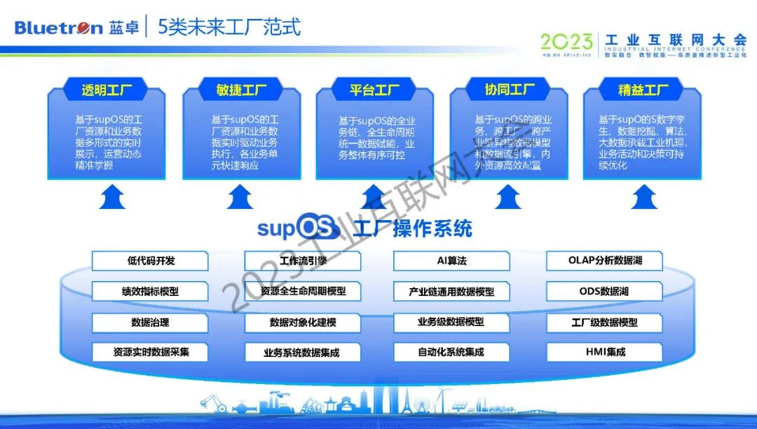 第二個是工業(yè)操作系統(tǒng),它是整個工廠的數(shù)字化轉型底座,可以連接工廠海量設備,打通工廠所有系統(tǒng),將數(shù)據集成同一個底座上,同時這個底座上有大量的預制件、組件、算法等。目前,藍卓supOS工業(yè)操作系統(tǒng)正通過平臺+APP的模式顛覆傳統(tǒng)工廠的五層架構,逐漸形成了企業(yè)、園區(qū)、行業(yè)、產業(yè)四級平臺體系。