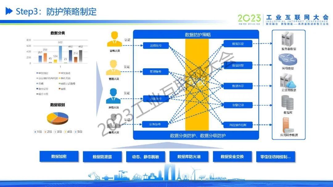 “數(shù)據(jù)安全策略是通過(guò)智能化、自動(dòng)化工具引擎對(duì)業(yè)務(wù)與數(shù)據(jù)進(jìn)行梳理,形成主體(人)與客體(數(shù)據(jù))間的安全策略并導(dǎo)入到安全運(yùn)營(yíng)組件?!?/p>