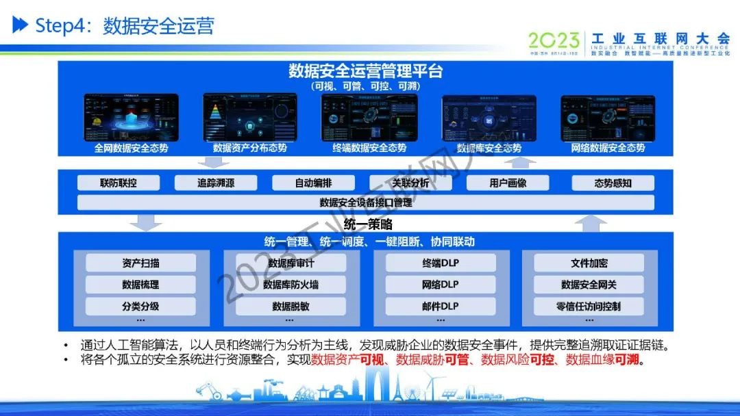 張?zhí)m蘭表示,工業(yè)互聯(lián)網(wǎng)數(shù)據(jù)安全是保障企業(yè)正常開展生產(chǎn)經(jīng)營(yíng)活動(dòng)的重要前提,經(jīng)濟(jì)社會(huì)穩(wěn)定發(fā)展的重要基石,也是總體國(guó)家安全戰(zhàn)略的重要組成。數(shù)據(jù)安全運(yùn)營(yíng)管理平臺(tái)通過(guò)安全智能識(shí)別、防護(hù)、檢測(cè)、運(yùn)營(yíng)做到可視、可管、可控和可溯。
