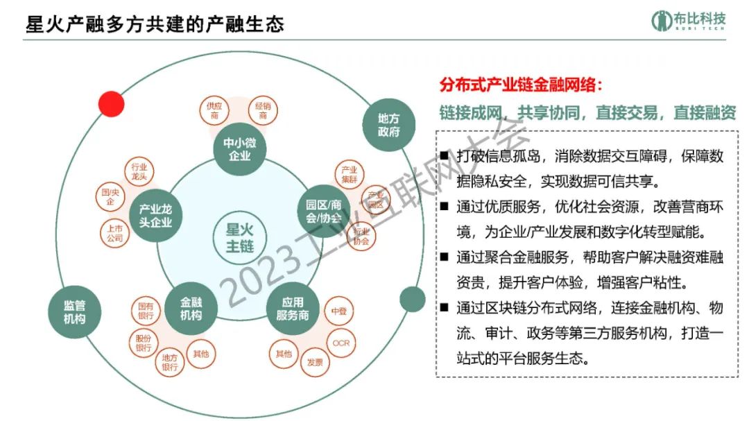 “星火產融基于可信新基礎設施(星火鏈網),與產業端及資金端不同參與者共同形成的創新高效協同網絡體系。其在連接、服務聚合等方面有別于傳統產業金融。“