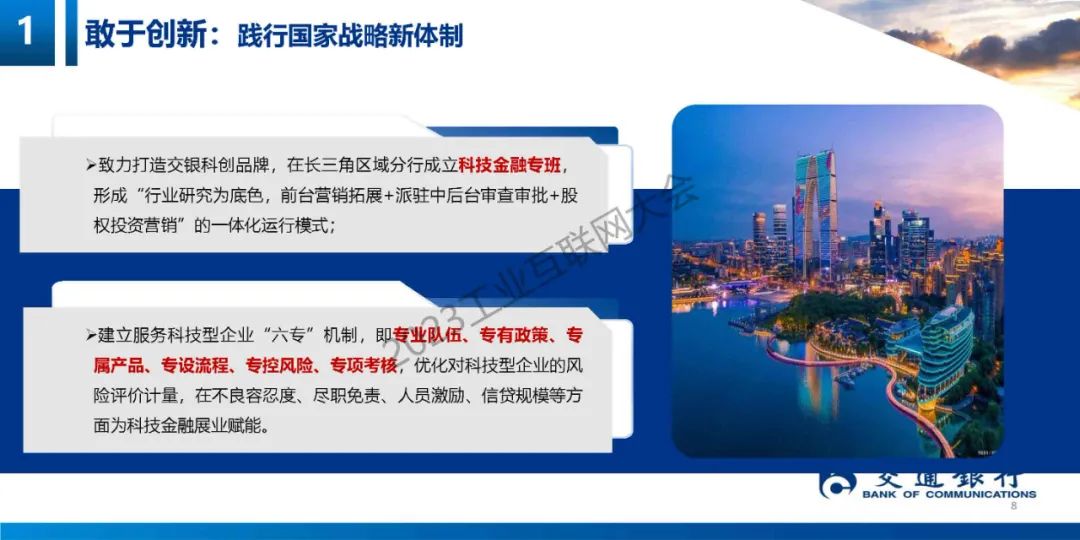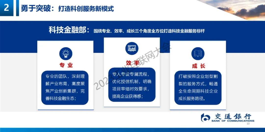 陳娟娟詳細地介紹了交通銀行在踐行國家戰(zhàn)略方面,服務(wù)創(chuàng)新發(fā)展方面做出的實踐,重點介紹了“6+3+7"的產(chǎn)品模式,幫助科創(chuàng)企業(yè)產(chǎn)品解決金融痛點和難點。