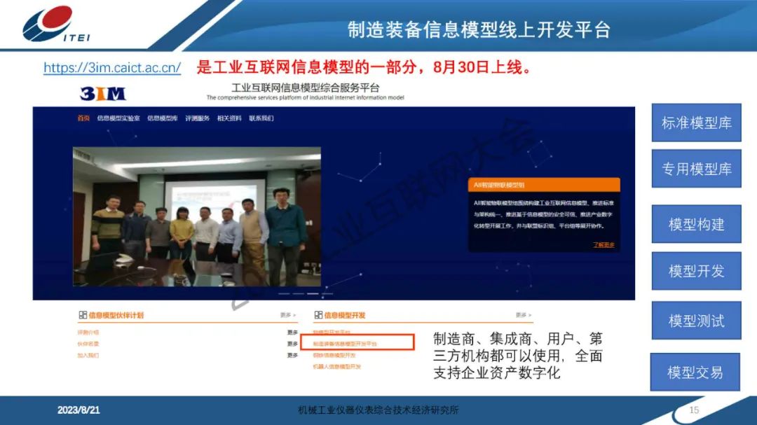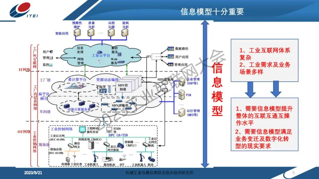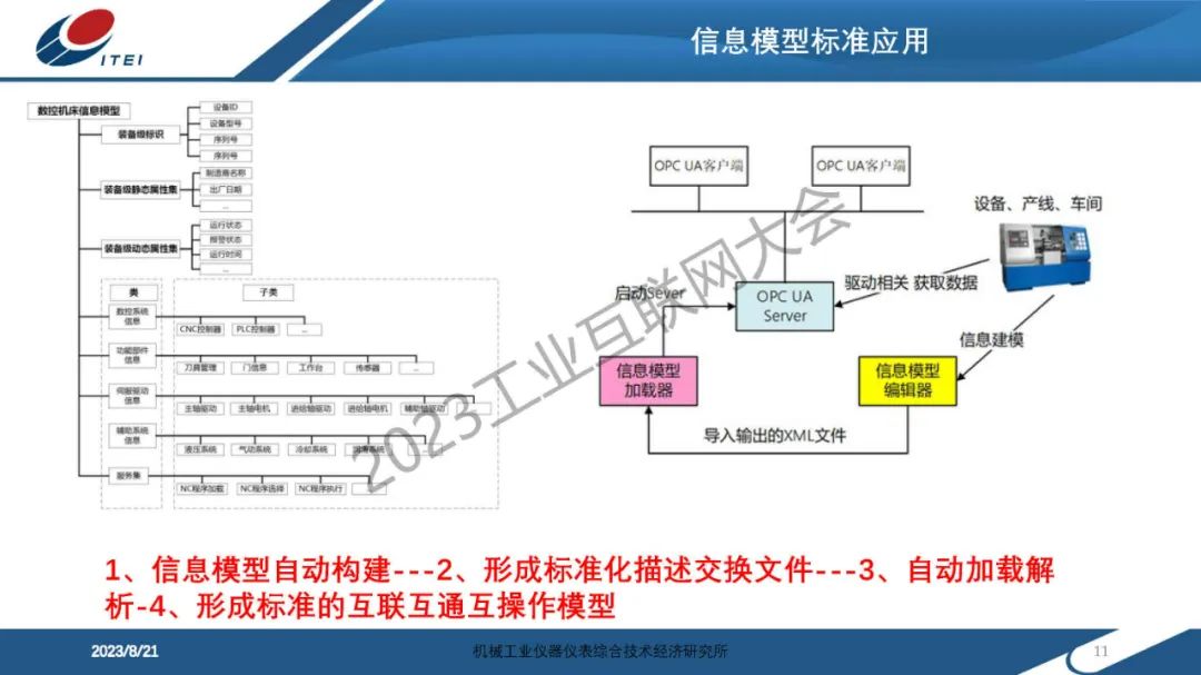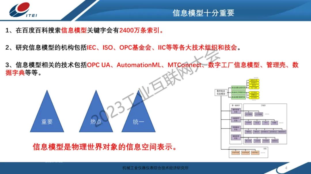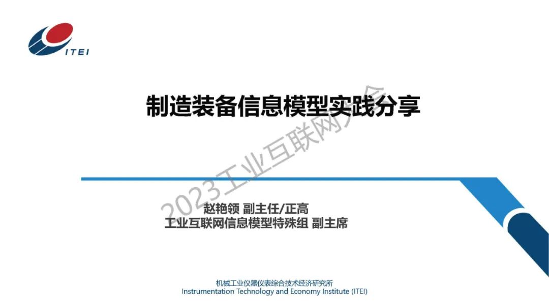 6月14日,在2023工業互聯網大會“工業互聯網信息模型發展論壇”上,機械工業儀器儀表綜合技術經濟研究所傳感與網絡中心副主任趙艷領發表了《制造裝備信息模型實踐分享》的主題演講。