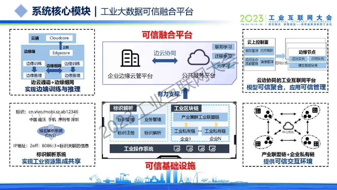 董勤喜介紹,工業(yè)數(shù)據(jù)融合需求旺盛,企業(yè)之間缺乏聯(lián)合與協(xié)同的可信環(huán)境,不能實現(xiàn)可信的數(shù)據(jù)融合,難以有效提高工業(yè)智能模型精度。邊緣智能關(guān)鍵技術(shù)以協(xié)同計算、資源隔離為核心,通常包括預(yù)測–訓(xùn)練云邊協(xié)同、云導(dǎo)向的云邊協(xié)同、邊緣導(dǎo)向的邊云協(xié)同、邊緣–邊緣協(xié)同、Docker容器技術(shù)、Kubernetes容器編排技術(shù)等。目前,數(shù)據(jù)安全防護、隱私保護以及數(shù)據(jù)價值聯(lián)合挖掘的市場需求巨大,需要對接可信工業(yè)數(shù)據(jù)空間,共建工業(yè)數(shù)據(jù)融合生態(tài),推廣應(yīng)用至更多場景和企業(yè)。