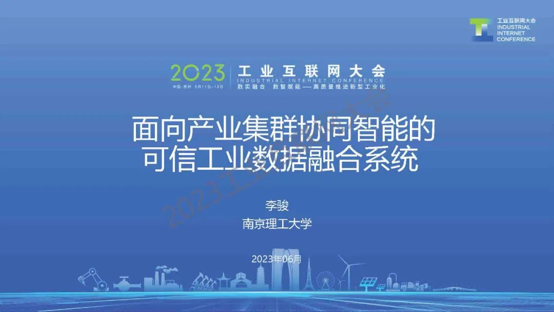 6月14日,在2023工業(yè)互聯(lián)網(wǎng)大會“工業(yè)數(shù)據(jù)共享流通創(chuàng)新發(fā)展論壇”上,南京理工大學(xué)教授、無線傳感網(wǎng)研究所所長李駿發(fā)表了《面向產(chǎn)業(yè)集群協(xié)同智能的可信工業(yè)數(shù)據(jù)融合系統(tǒng)》的主題演講。