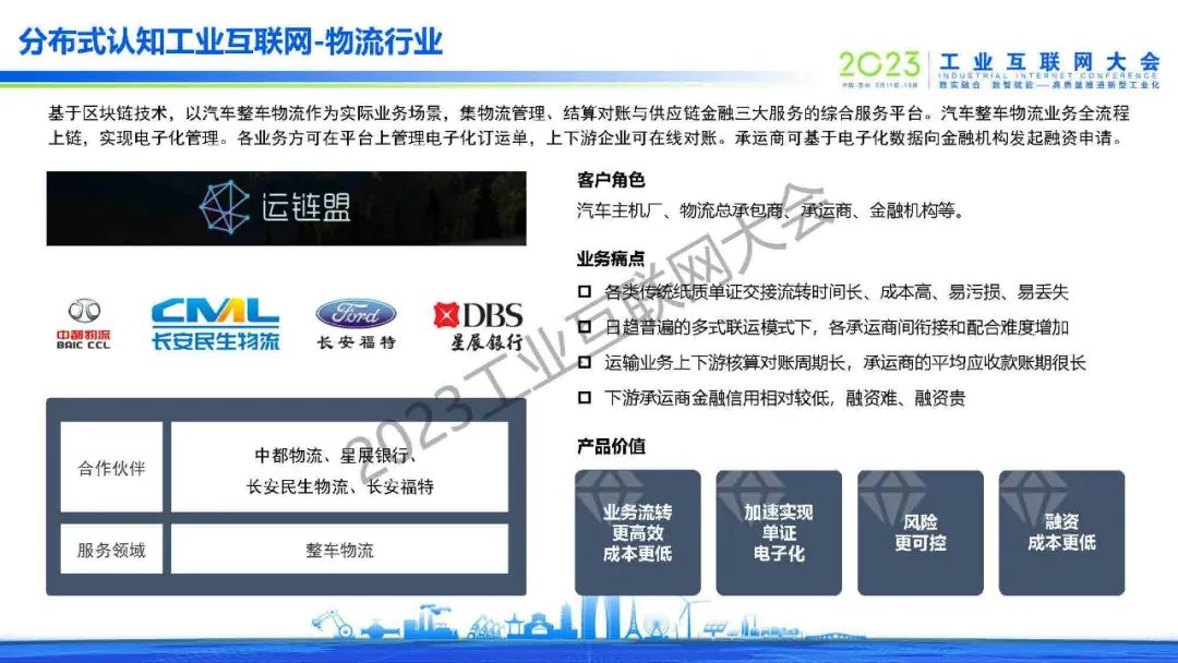 孫振華指出,分布式認知工業互聯網首次將區塊鏈、隱私計算、知識圖譜技術應用到工業互聯網平臺。并分享了分布式認知工業互聯網在汽車零部件行業、鋼鐵行業、油氣數字監管平臺、物流行業和產業大腦的相關應用。