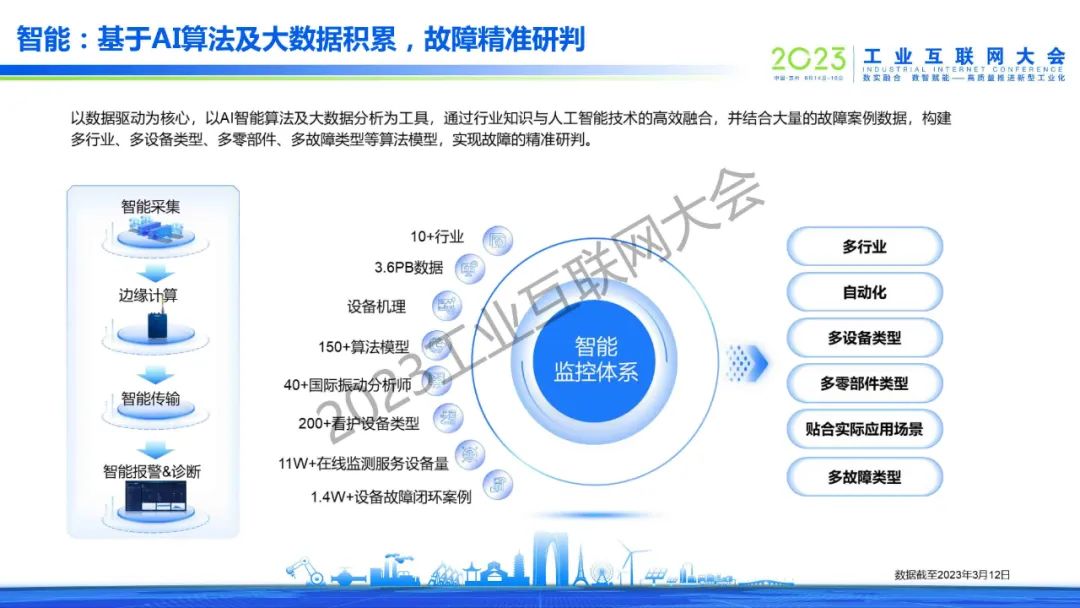 “以數(shù)據(jù)驅(qū)動(dòng)為核心,以A智能算法及大數(shù)據(jù)分析為工具,通過(guò)行業(yè)知識(shí)與人工智能技術(shù)的高效融合,并結(jié)合大量的故障案例數(shù)據(jù),構(gòu)建多行業(yè)、多設(shè)備類(lèi)型、多零部件、多故障類(lèi)型等算法模型,實(shí)現(xiàn)故障的精準(zhǔn)研判。”