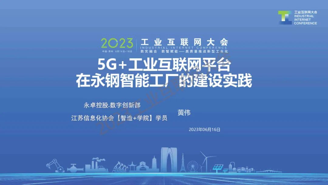 6月16日,在2023工業(yè)互聯(lián)網(wǎng)大會“工業(yè)互聯(lián)網(wǎng)與鋼鐵行業(yè)融合應(yīng)用論壇”上,江蘇永鋼集團(tuán)有限公司技術(shù)總監(jiān)黃偉發(fā)表了《5G+工業(yè)互聯(lián)網(wǎng)平臺在永鋼智能工廠的建設(shè)實踐》的主題演講。