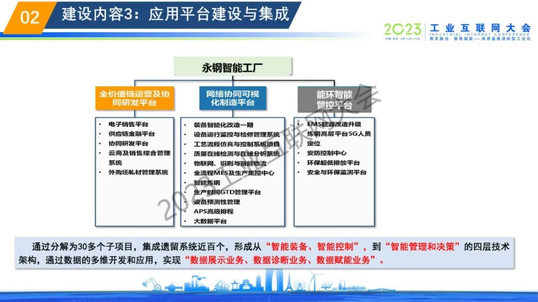 黃偉表示傳統(tǒng)的大體量、粗放式、弱研發(fā)、輕環(huán)保的管理模式,讓普通鋼鐵企業(yè)難以滿足市場需求,經(jīng)濟效益低,難以產(chǎn)生積極性,特種鋼材行業(yè)發(fā)展陷入困局,嚴(yán)重制約國內(nèi)高端制造業(yè)的發(fā)展。永鋼智能工廠通過分解為30多個子項目,集成遺留系統(tǒng)近百個,形成從“智能裝備、智能控制”,到“智能管理和決策”的四層技術(shù)架構(gòu),通過數(shù)據(jù)的多維開發(fā)和應(yīng)用,實現(xiàn)“數(shù)據(jù)展示業(yè)務(wù)、數(shù)據(jù)診斷業(yè)務(wù)、數(shù)據(jù)賦能業(yè)務(wù)”。