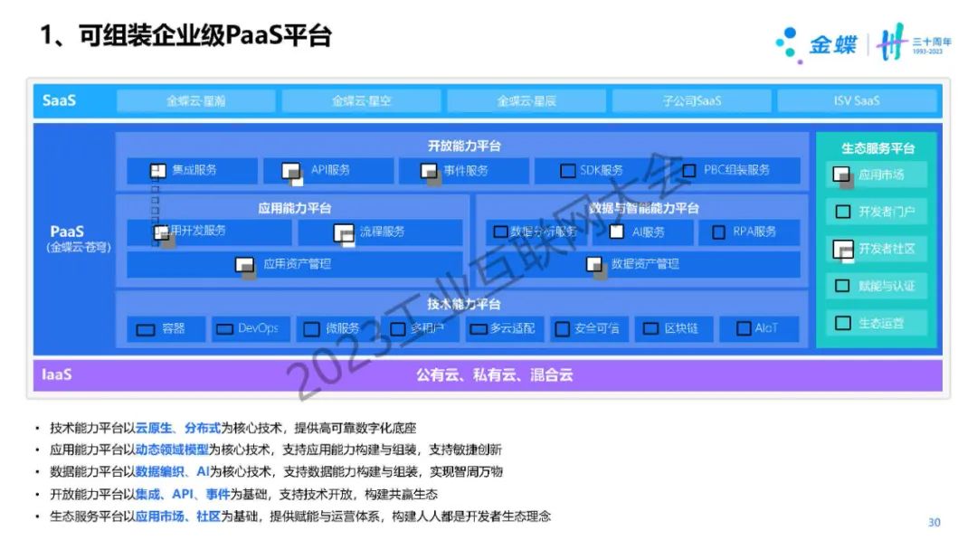 郭旭光指出大型企業、裝備制造企業都面臨構建一個新型平臺的挑戰。建平臺的目標上是基于新的平臺去構建企業數字化能力,響應市場柔性化的需求和快速響應的要求。金蝶星域裝備制造工業互聯網平臺通過個性化定制、平臺化設計,智能化生產,網絡化協同,服務化延伸,數字化管理等六個場景來搭建總體架構,希望能給國內更多裝備制造企業提供新一代云服務的產品,與世界一流企業共創數字能力。