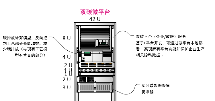 雙碳微平臺是平臺功能的延伸或分布式平臺,能夠進行邊緣側智能管控,滿足企業數據和系統私有化部署需求,隨時與平臺連接,在此基礎上實時精準采集碳相關監測數據及生產數據,沉淀模型算法優化工藝減少碳排放。