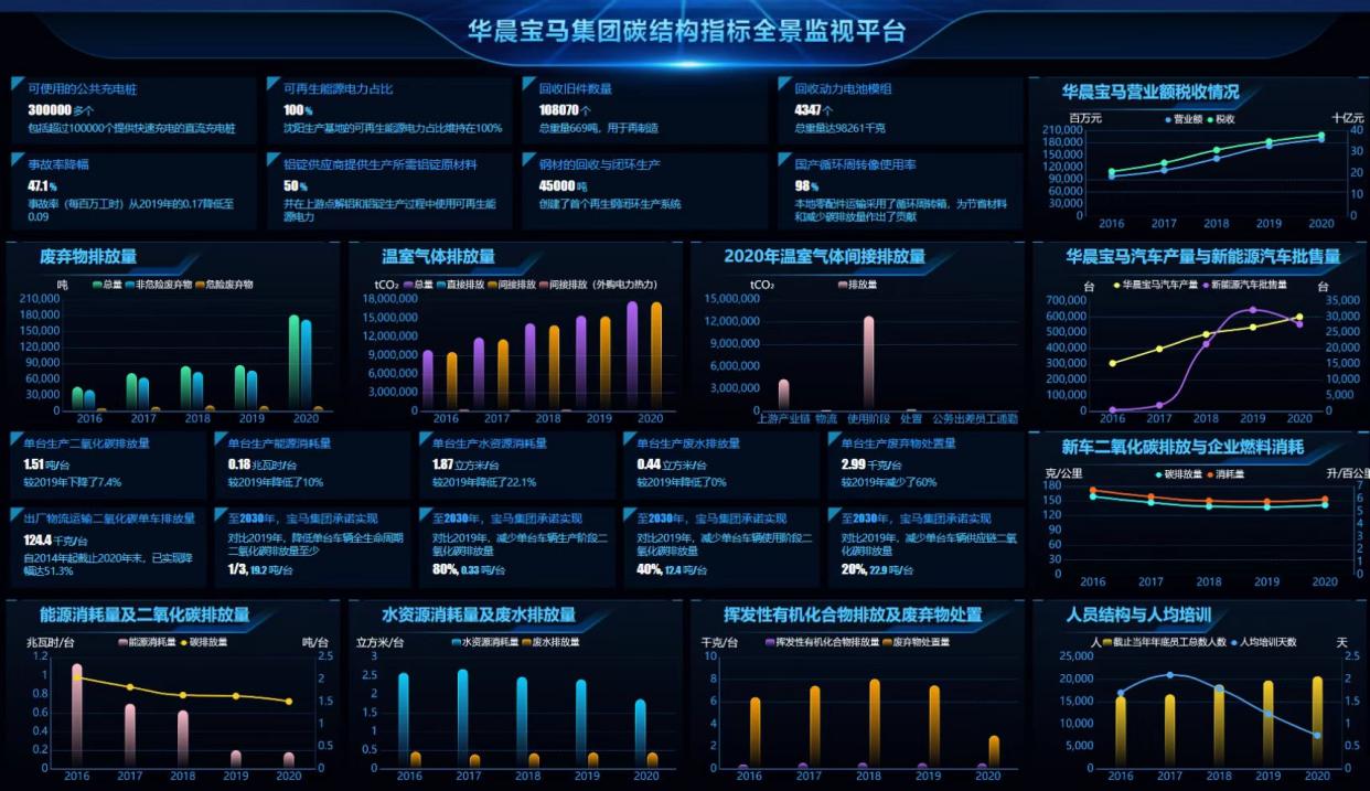 寶馬集團作為中德(沈陽)高端制造產業(yè)園規(guī)模較大的企業(yè),是我省先進制造企業(yè)的典范,具有較強的代表性。平臺通過匯集寶馬運營、企業(yè)應用(華晨寶馬集團)供應鏈相關數據,以及車輛使用等碳排放相關關鍵績效指標,深度剖析華晨寶馬全產業(yè)鏈碳指標數據,利用可視化技術實現碳排放多維度全景監(jiān)測。通過汽車生產過程中主要資源消耗和排放量的匯總統計與對比分析,監(jiān)測企業(yè)的能源消耗結構特點和變化趨勢,為企業(yè)制定降碳增效方案、進一步實現節(jié)能減排、提高綠色發(fā)展水平提供數據支撐。具體內容如下: