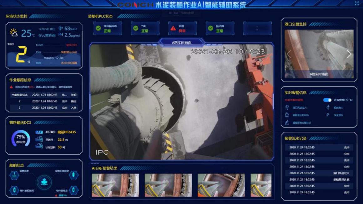 安徽海螺集團有限責任公司與中國電信合作,開展了“5G+AI+智慧裝船”項目建設,實現了精準動態作業場景的應用。通過搭建多視角相機,確定不同相機間同一物體的對應關系,根據三角測量原理,實時監測水泥船位置以及裝船機溜筒位置和姿態,包括船舷位置、溜筒距船舷偏移比例、物料偏移度等。對數據進行AI分析,并通過5G網絡將結果與預警信息傳送到指揮調度中心,基于中心控制算法.發送指令到裝船機可編程邏輯控制器(PLC),實時控制裝船機作業,避免因位置不當引起碰壁、冒灰和其他視野受限情況,實現對裝船作業的全流程監控。項目實施后,生產效率提升70%,人員安全事故數降低到0