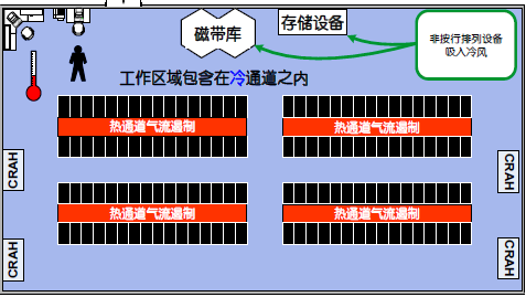 熱通道封閉應(yīng)用。采用了“面對(duì)面、背對(duì)背”冷熱通道的機(jī)柜布置方式,冷熱通道的氣流互相分隔,得到有效管理,避免了氣流短路,提高了機(jī)房系統(tǒng)的制冷效率,溫度場(chǎng)分布均勻;封閉熱通道后,熱池大大減小,空調(diào)回風(fēng)溫度達(dá)到35℃以上,使空調(diào)末端的能效比得到進(jìn)一步提高,更加節(jié)能。