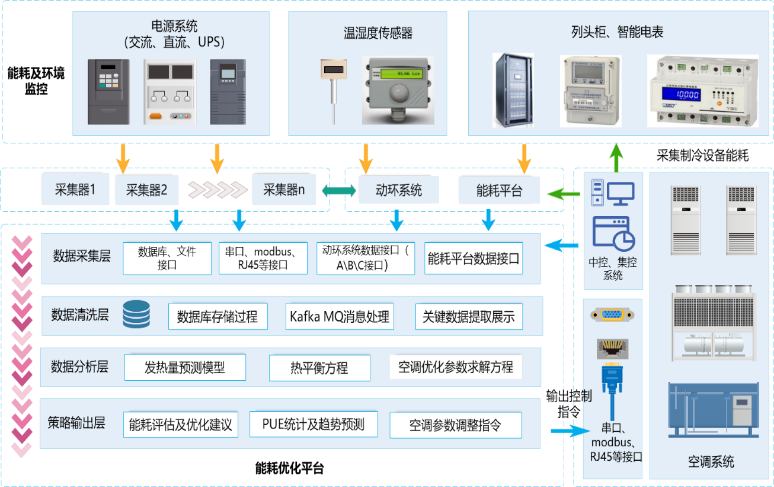 智能能耗管理系統(tǒng)應(yīng)用。以B03機(jī)樓的制冷系統(tǒng)為試點(diǎn),建設(shè)能耗管控系統(tǒng),搭建分布式邊緣數(shù)據(jù)采集體系對(duì)動(dòng)環(huán)、末端空調(diào)及冷水機(jī)組進(jìn)行分鐘級(jí)粒度的數(shù)據(jù)采集,構(gòu)建機(jī)房熱力學(xué)近似模型及反饋修正模型,輸出智能化調(diào)控策略,通過邊緣算力實(shí)現(xiàn)對(duì)邊緣設(shè)備的控制,現(xiàn)對(duì)空調(diào)末端、制冷設(shè)備的自動(dòng)節(jié)能控制。目前該機(jī)樓PUE運(yùn)行值降低至1.3。