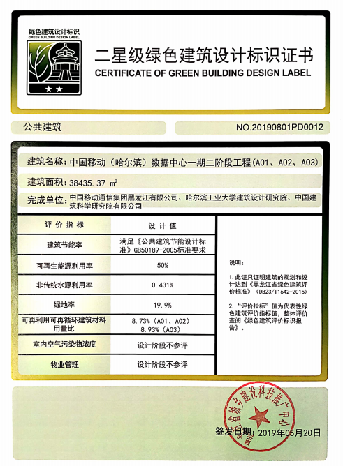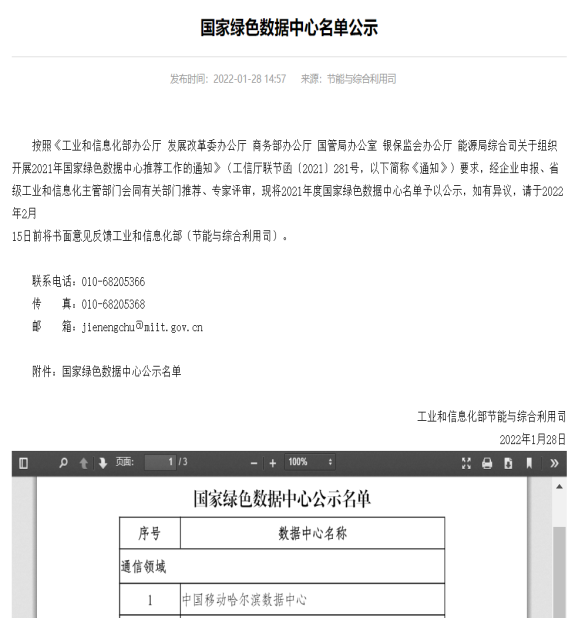 哈爾濱數(shù)據(jù)中心在規(guī)劃設(shè)計(jì)、項(xiàng)目建設(shè)、運(yùn)行維護(hù)各個(gè)環(huán)節(jié),引入綠色建筑、自然冷源、新型空調(diào)末端、余熱回收、能耗管理、智能運(yùn)維等多種數(shù)字化節(jié)能降碳技術(shù),有效實(shí)現(xiàn)PUE不斷降低,2021年P(guān)UE值降低至1.349。2020年6月,工信部對(duì)哈爾濱數(shù)據(jù)中心開展能效監(jiān)察工作,哈爾濱數(shù)據(jù)中心被評(píng)定為國家一級(jí)節(jié)能單位。