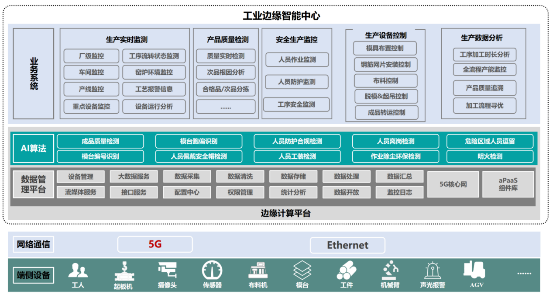 3.工業邊緣智能中心:以邊緣計算平臺為基座,提供虛擬化算力,支撐5G核心網系統、數據處理組件、AI處理組件及其他工業應用組件的部署運行。邊緣智能中心基于超融合架構的微型數據中心構建,支持虛擬機及容器混合算力部署,同時支撐傳統工控軟件及新興的工業AIoT軟件運行。該平臺內置的5G核心網系統,提供了本地化 的5G 網絡接入能力,可快速構建基于5G的OICT融合方案。