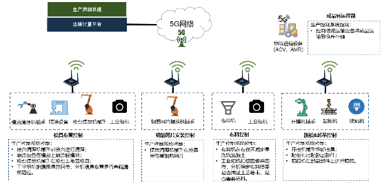 2.現場設備聯網:在產線的各個智能生產設備(例如,布料機、作業機械手、傳自動運輸車及攝像機、工業相機、RFID標簽/讀寫器等各類傳感器)上加裝5G工業網關,使得上述設備可通過現場5G網絡接入生產控制系統。