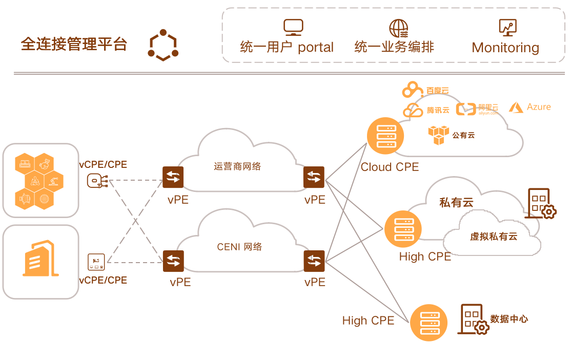 包括CPE、VPE、端局云、邊緣計算節(jié)點(diǎn)、光傳輸鏈路和數(shù)據(jù)中心。實現(xiàn)網(wǎng)絡(luò)、計算和存儲資源的監(jiān)測、配置。